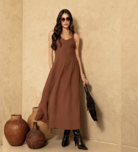 O vestido Olsi é a peça que une delicadeza e sofisticação em um design atemporal. Confeccionado em tecido leve e confortável, ele valoriza a silhueta com elegância, sendo ideal para ocasiões que pedem um toque refinado, mas sem abrir mão da praticidade.