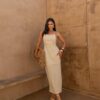 Eleve seu estilo com o vestido mídi Amber, uma peça que une elegância, sofisticação e conforto em um só look.